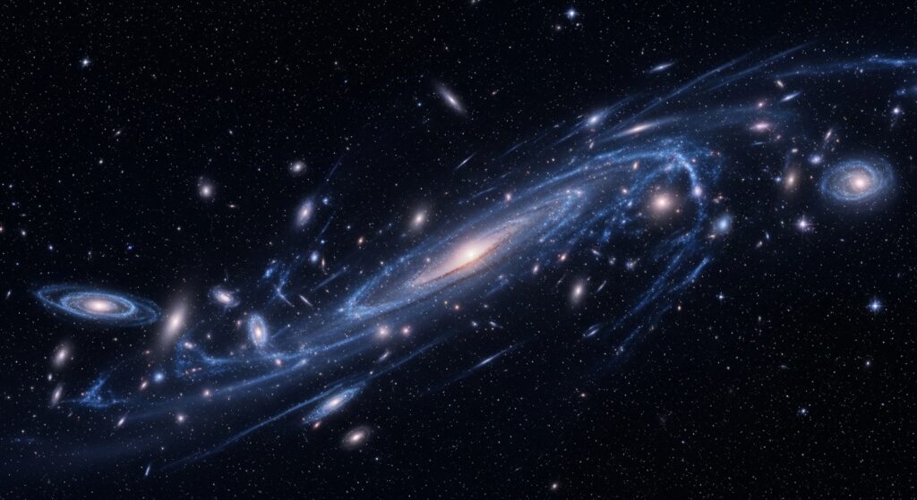Das Universum ist ein faszinierender Ort, voller Geheimnisse, die Wissenschaftler seit Jahrhunderten zu entschlüsseln versuchen. Eines der größten Rätsel der modernen Astrophysik ist die Dunkle Materie – eine mysteriöse Substanz, die weder Licht aussendet noch absorbiert, aber dennoch einen enormen Einfluss auf die Struktur und Entwicklung des Kosmos hat. Obwohl sie etwa 27 % der gesamten Masse-Energie des Universums ausmacht, bleibt sie unsichtbar und schwer fassbar. Doch wie haben Wissenschaftler ihre Existenz entdeckt? Welche Rolle spielt sie in der Kosmologie, und warum ist sie so schwer zu erforschen?